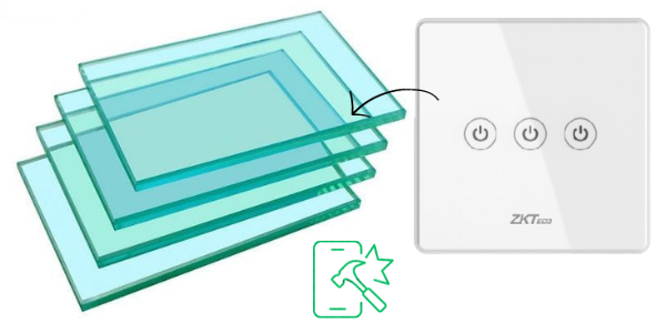 Mặt công tắc thiết kế với kính cường lực sáng bóng không trầy xước, thời trang, bền, và an toàn cao. | ![]() |