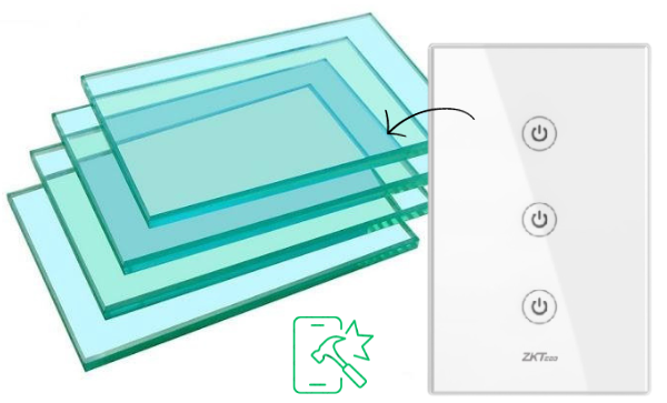 Mặt công tắc thiết kế với kính cường lực sáng bóng không trầy xước, thời trang, bền, và an toàn cao. | ![]() |