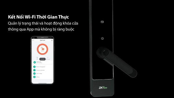 | Chức năng | Quản lý người dùng qua ứng dụng di động, Mở khóa từ xa, Điều khiển bằng giọng nói, Mã khóa tạm thời (động, định kỳ), Mã chống nhìn trộm (lên đến 20 chữ số), Chuông cửa, Cài đặt âm lượng, Cài đặt ngôn ngữ, Chế độ đi qua, Chế độ Không làm phiền, Chế độ Khóa Admin, Cảnh báo cửa chưa đóng, Cảnh báo giả mạo, Cảnh báo pin yếu, Cảnh báo thử nghiệm liên tiếp, Cập nhật firmware qua OTA |
