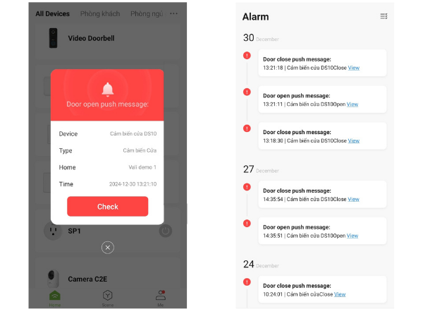- Theo dõi trạng thái hoạt động của các thiết bị báo động như cảm biến chuyển động, cảm biến cửa, cảm biến nhiệt độ, và các thiết bị phát hiện khói/gas.